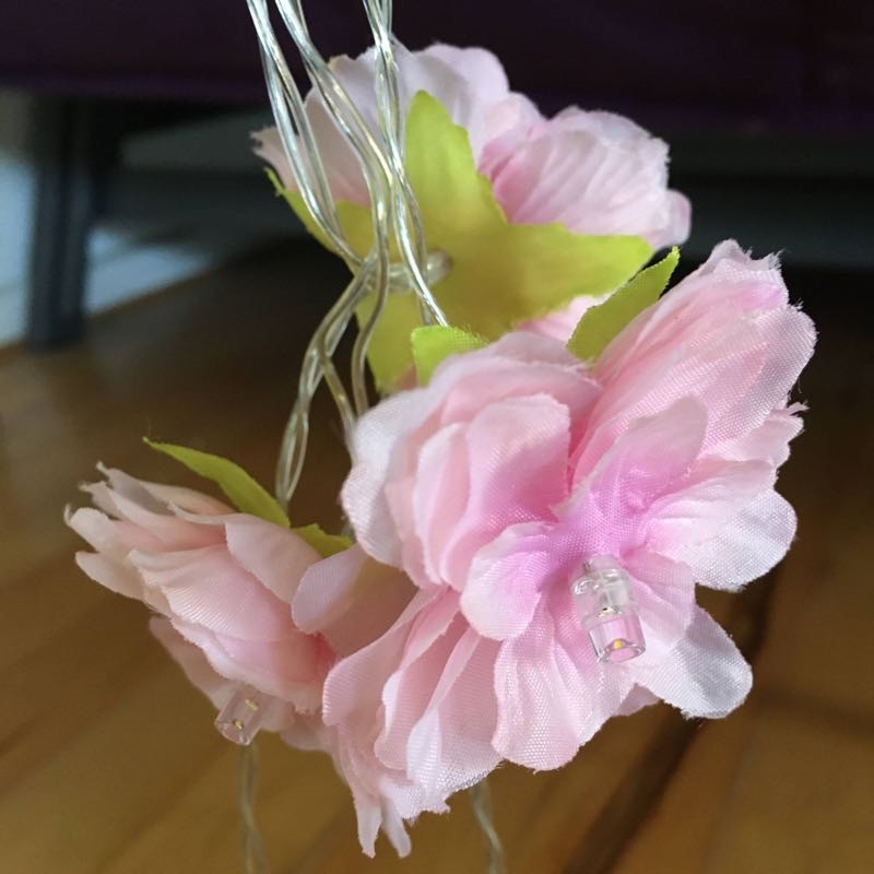 LED lyskæde med lyserøde blomster er perfekte til dekoration.