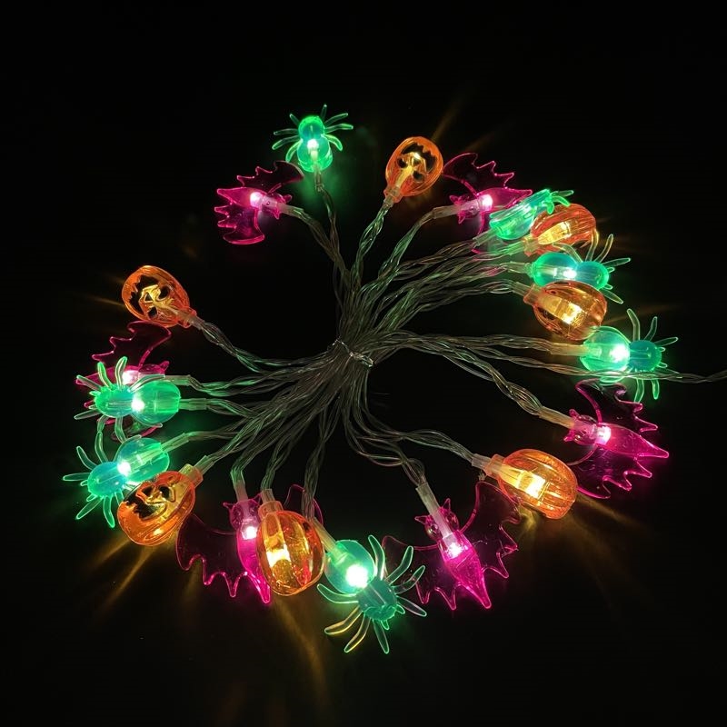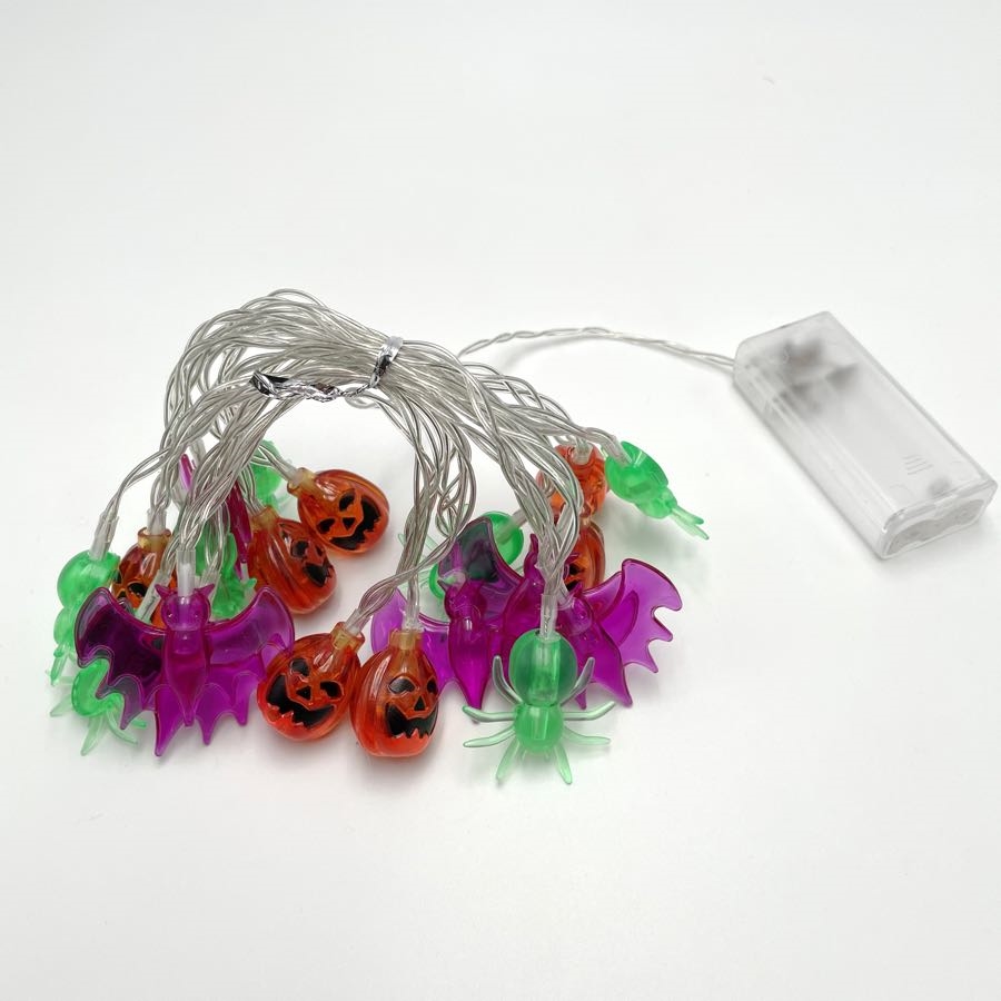 Halloween lyskæde med græskar, flagermus og edderkopper - 3 m 20 lys