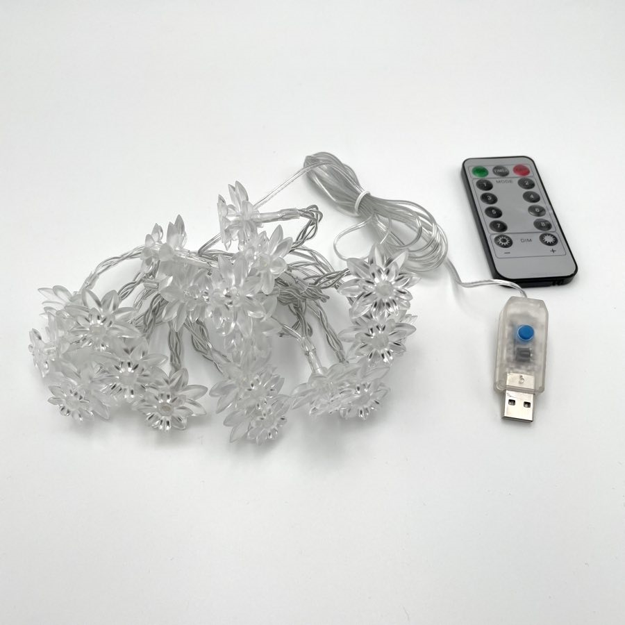 USB-drevet lyskæde med lotus blomster og fjernbetjening - 5 m 20 lys