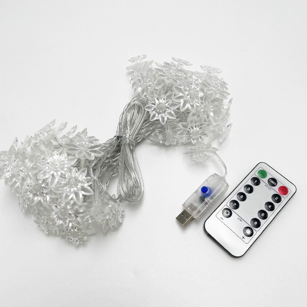 USB-drevet lyskæde med lotus blomster og fjernbetjening - 8 m 40 lys