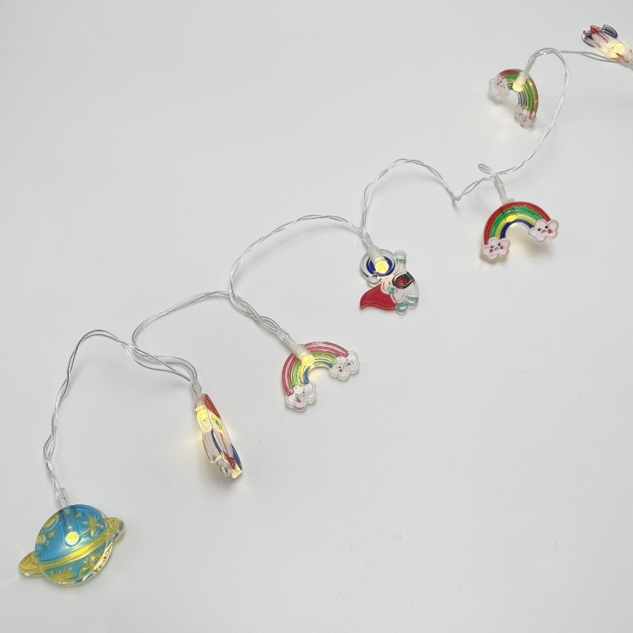 LED lyskæde med raketter, astronauter, planeter og regnbuer - 1,5 m 10 lys