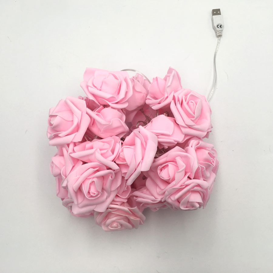 USB-drevet lyskæde med lyserøde roser - 6 m 40 roser