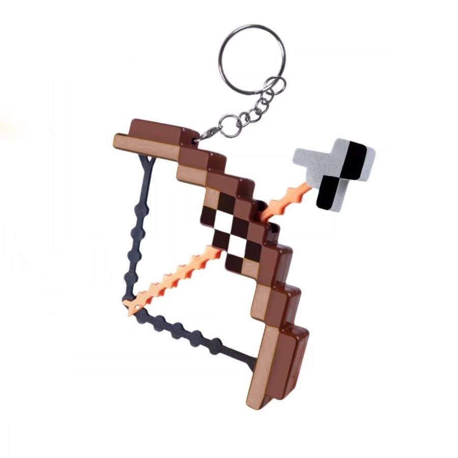 Mini pixel bue og pil legetøj med skydefunktion og nøglering