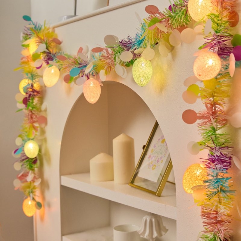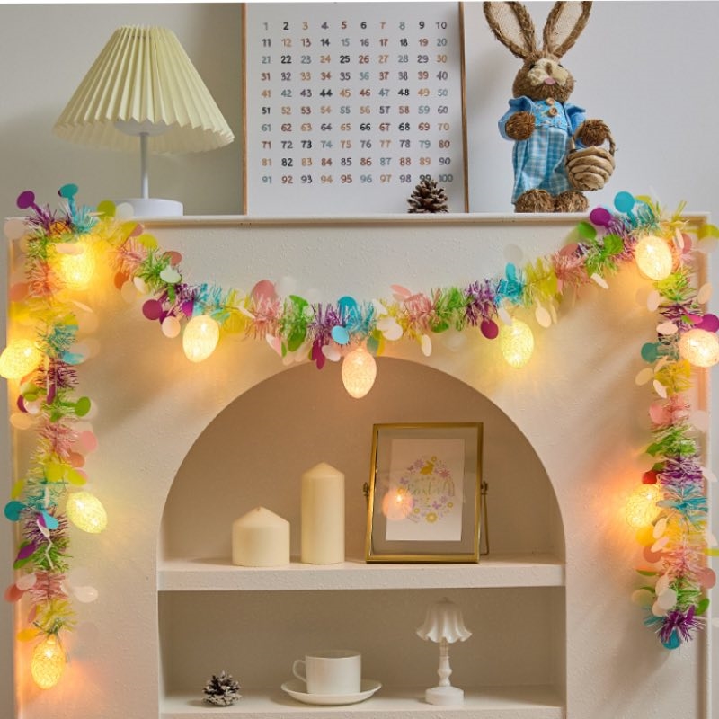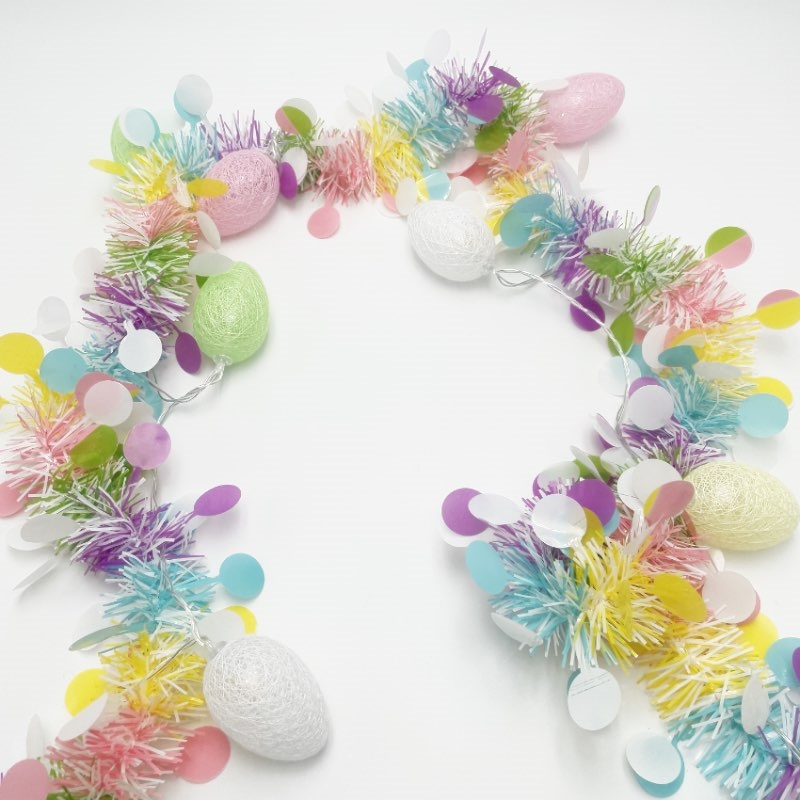 Denne LED-lyskæde skaber en hyggelig og festlig stemning til påske. Lyskæden er pyntet med farverige æg, perfekt til hylder, vægge, vinduer eller som borddekoration.