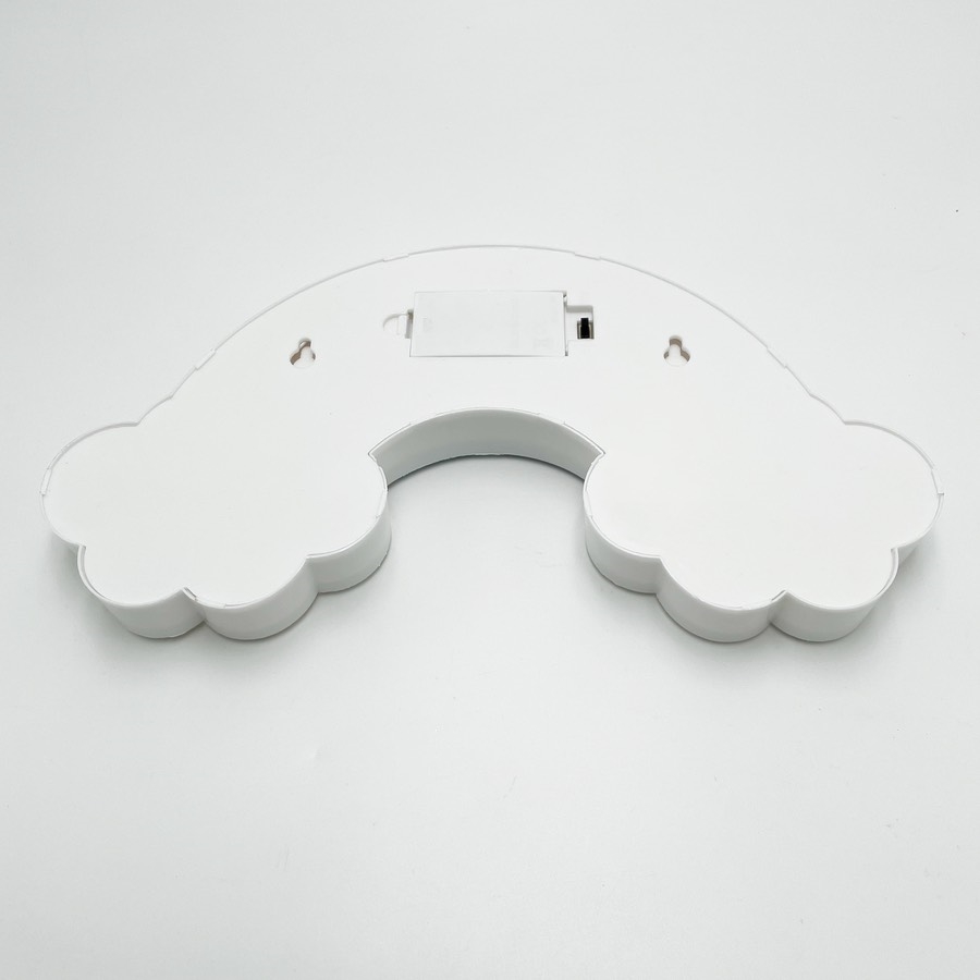 Dekorativ regnbueformet LED-lampe med hvide skyer og blødt LED-lys.