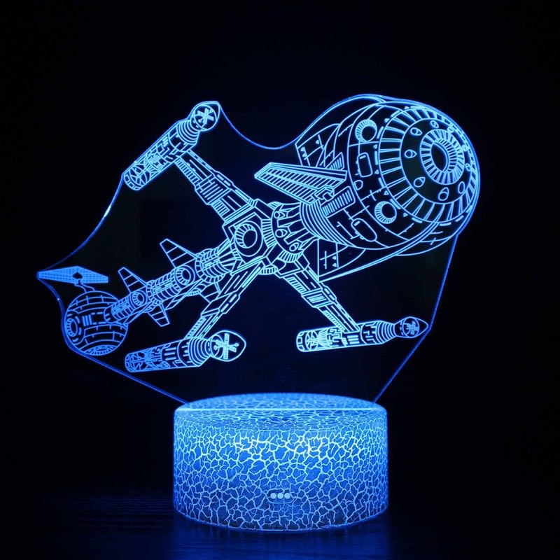 Denne 3D rumskibslampe er en dekorativ LED-lampe med flot 3D-illusion, der giver et futuristisk og spændende udtryk, når lyset er tændt.