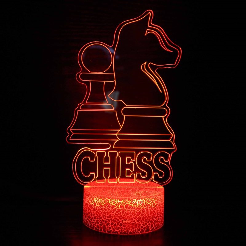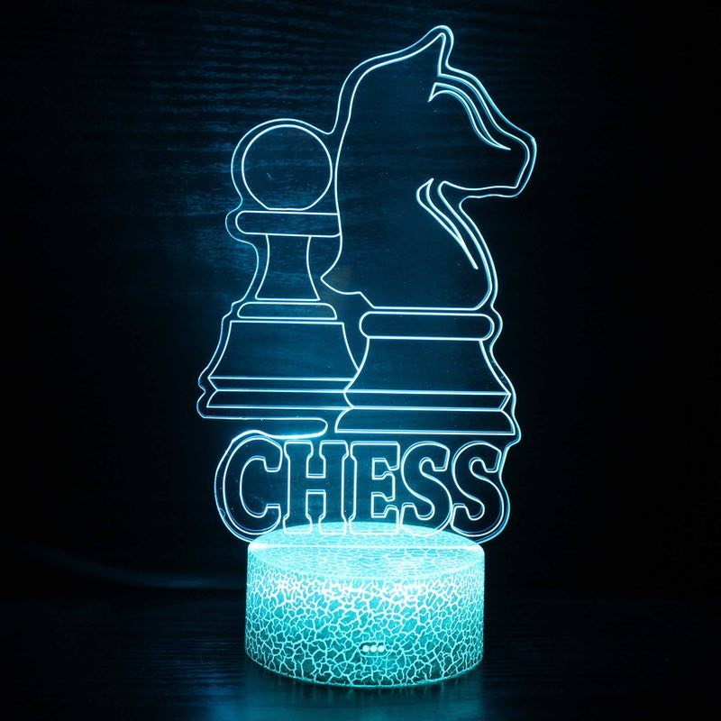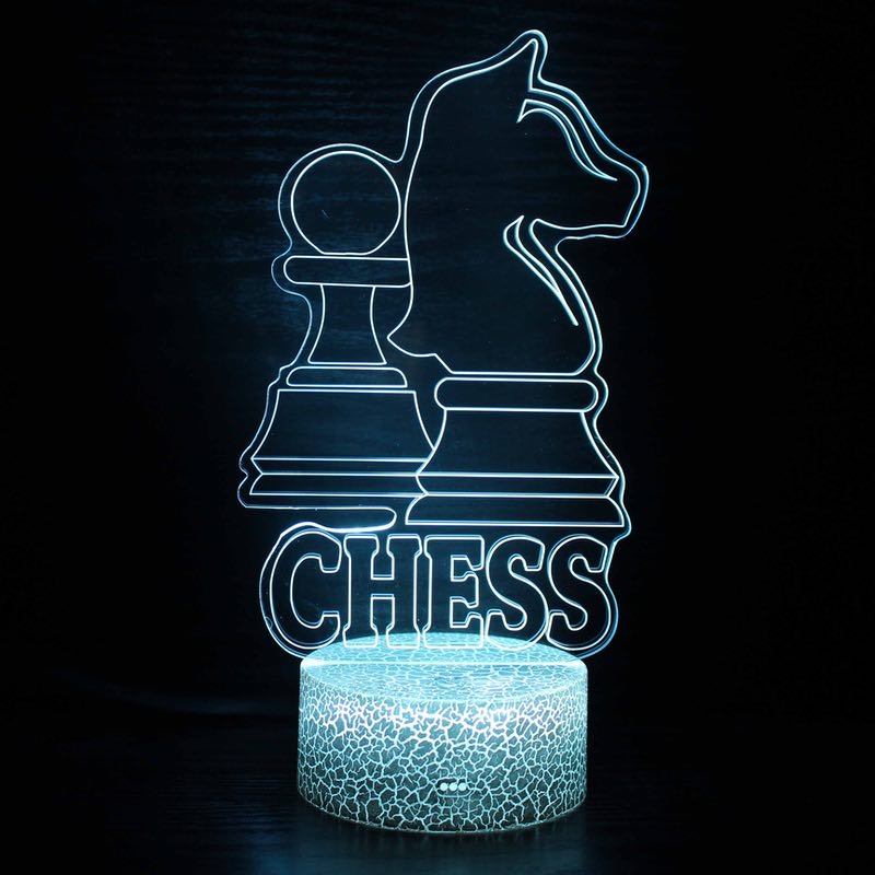 Skak 3D lampe er en fascinerende optisk illusionslampe. Selve akryllampen er flad, men skaber en imponerende visuel 3D-effekt.