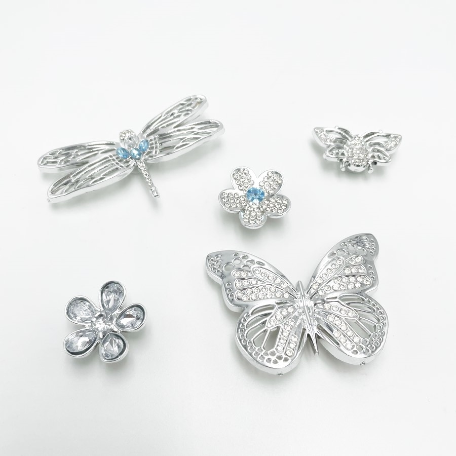 Sølvfarvet Crocs charms sæt med sommerfugl, blomster og guldsmed – 5-pak