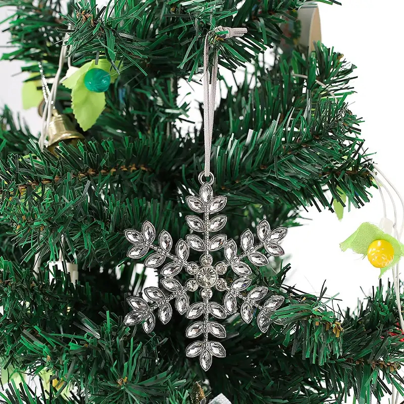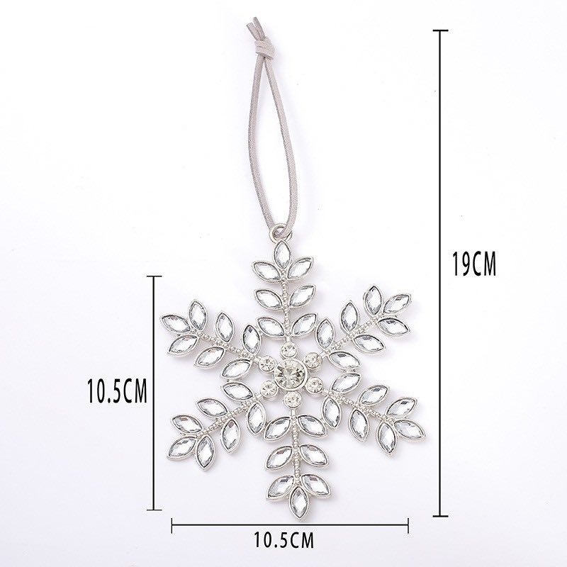 Sølvfarvet snefnug juleophæng med rhinsten er en elegant og glitrende juledekoration, der giver dit juletræ et luksuriøst og festligt udtryk.