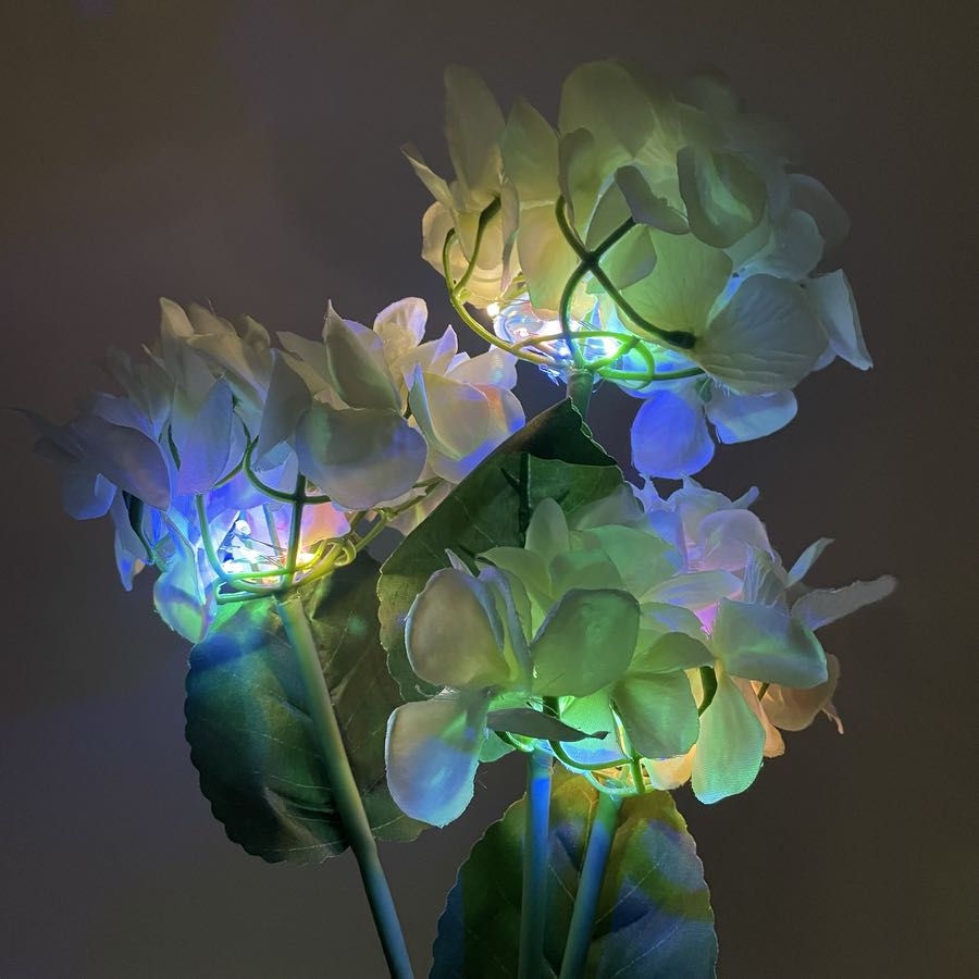 Solcelle LED hortensia blomst med multifarvet lys på spyd