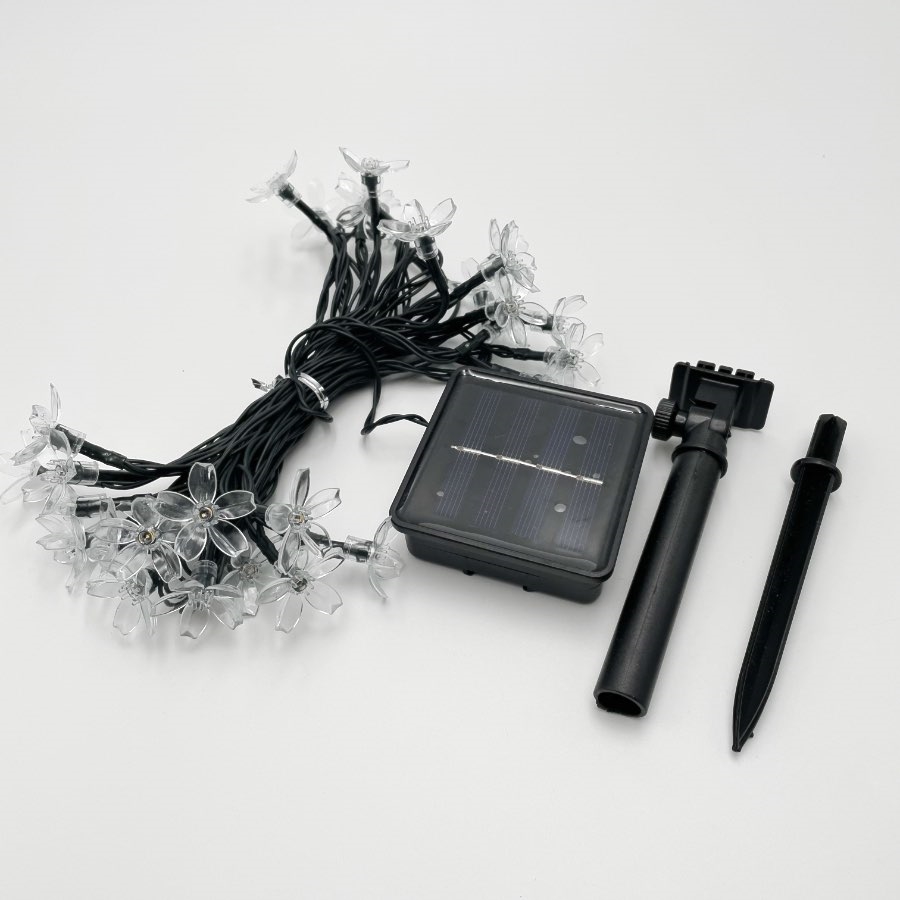 Solcelle lyskæde med kirsebærblomster er perfekt til dekoration i haven.