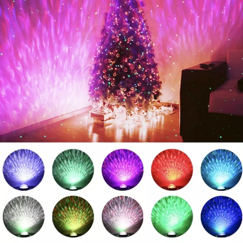 Stjernehimmel projektorlampe lyser rød, grøn, blå eller hvid 4 lysfarver som kan projicere enkeltfarve eller flerfarvede havbølgelyseffekter. Stjernelysprojektoren kombinerer perfekt de grønne stjerner og bølgelyset og giver dig en dejlig fornemmelse af havet.