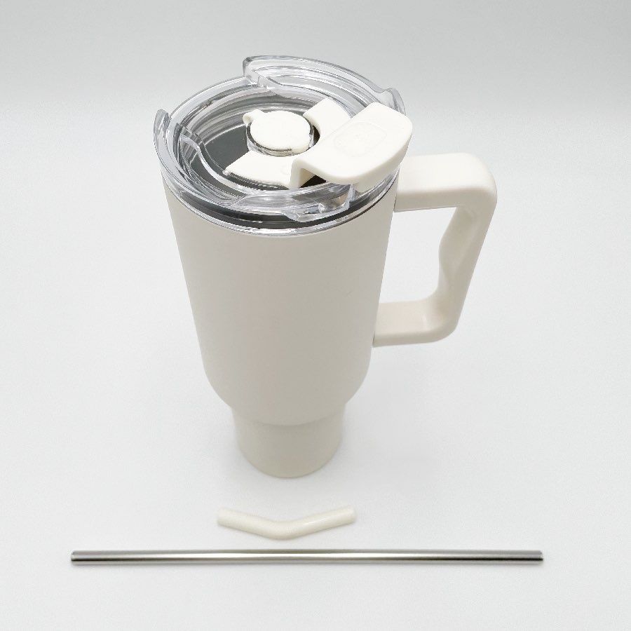 Termokrus med låg og rustfrit stål sugerør - 1180 ml - hvid