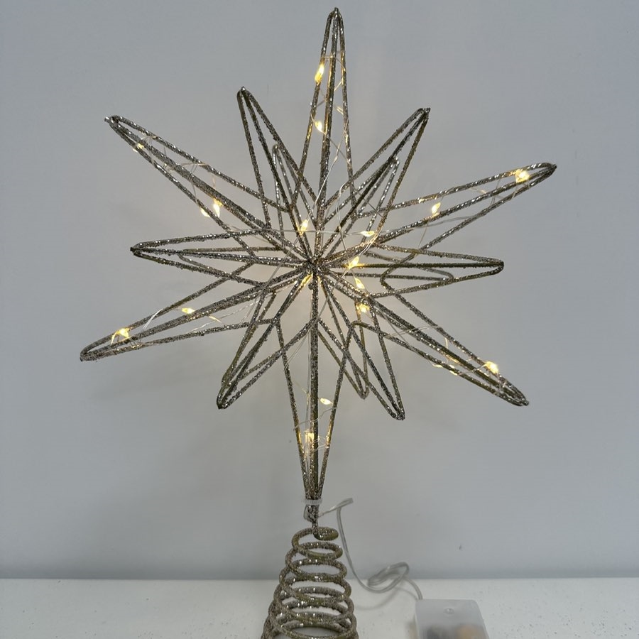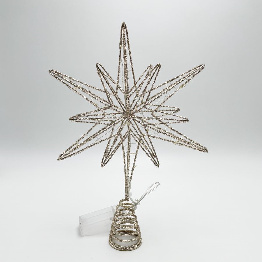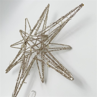 LED topstjerne med glimmer til juletræ – champagnefarvet og sølvfarvet