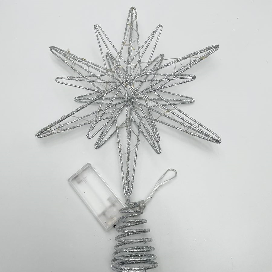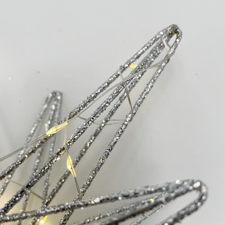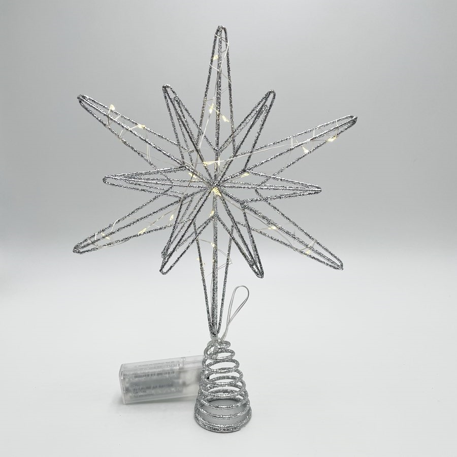 LED topstjerne med glimmer til juletræ – sølvfarvet