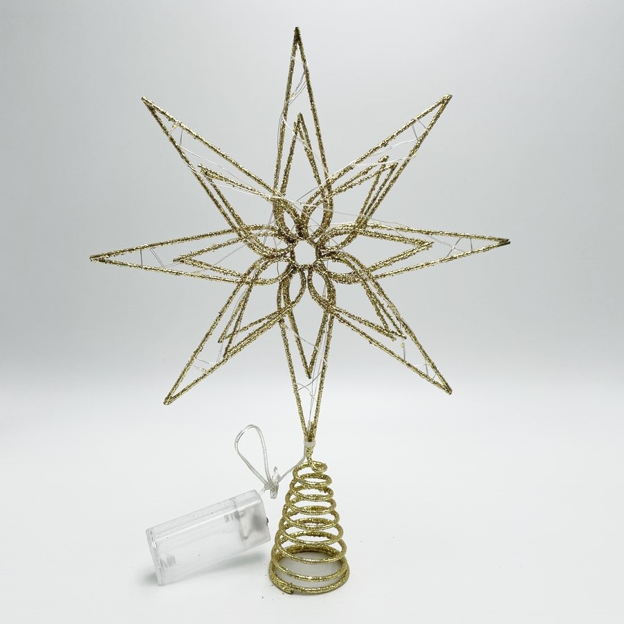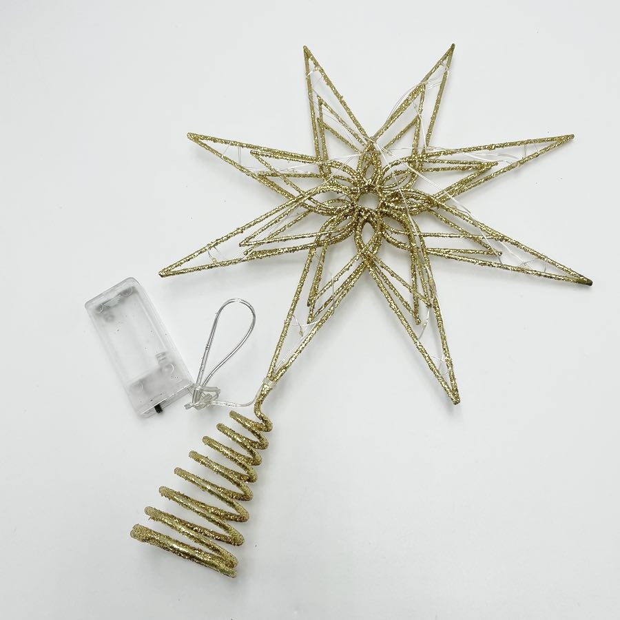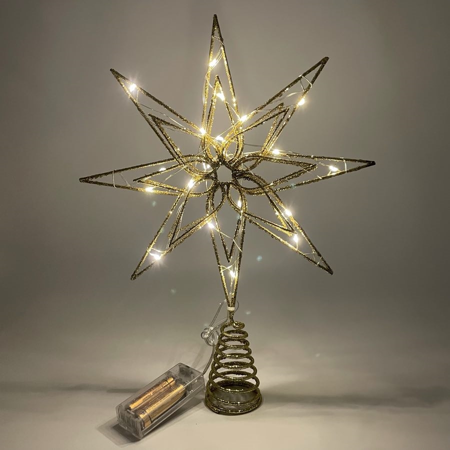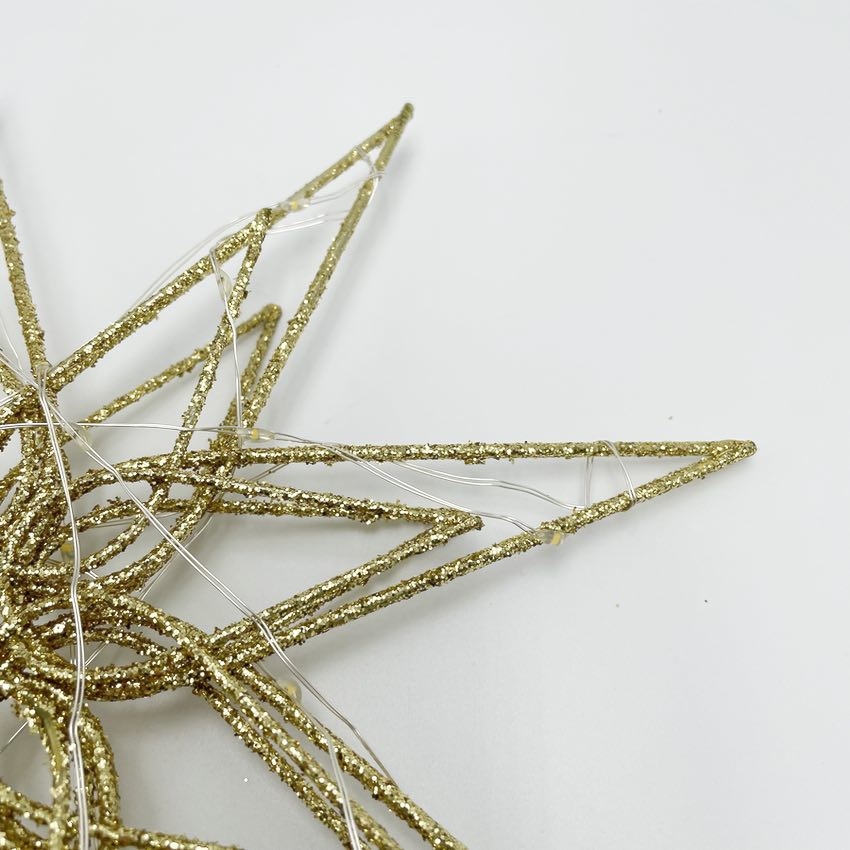 Guld LED topstjerne til juletræ – med glimmer og varmt hvidt lys