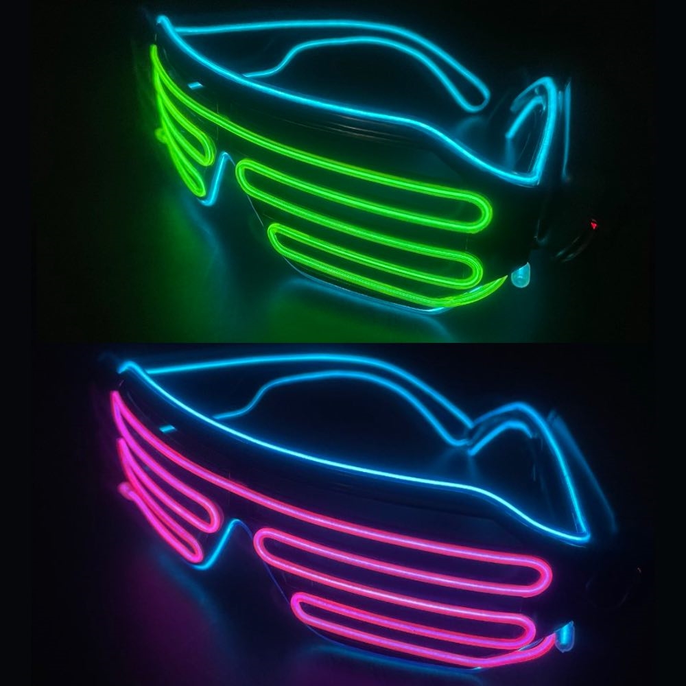 Trådløs gitterbrille i forskellige lysfarver er et flot tilbehør til enhver fest. Den trådløse forbindelse giver dig frihed til at danse og bevæge dig uden begrænsninger.